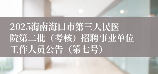 2025海南海口市第三人民医院第二批(考核)招聘事业单位工作人员公告(第七号)
