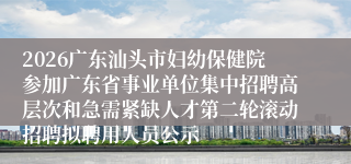 2026广东汕头市妇幼保健院参加广东省事业单位集中招聘高层次和急需紧缺人才第二轮滚动招聘拟聘用人员公示