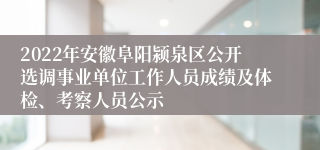 原文标题:2022年度颍泉区公开选调事业单位工作人员成绩及体检、考察人员公示