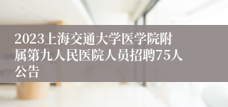 公务员考试网为各位考生带来:2023上海交通大学医学院附属第九人民医院人员招聘75人公告。 考生还可以关注本栏目了解更多上海医院招聘考试精彩内容。