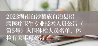 原文标题:・白沙黎族自治县招聘医疗卫生专业技术人员公告(第5号)关于入围体检人员名单、体检有关事项的公告