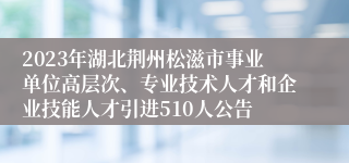 原文标题:松滋市2023年事业单位高层次、专业技术人才和企业技能人才引进公告