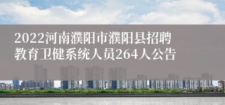 濮阳县公开招聘教育卫健系统工作人员264名,其中教育系统100人、卫健系统164人。招聘单位、岗位、数量及条件等详见附件1:《2022年濮阳县公开招聘教育卫健系统工作人员岗位信息表》。