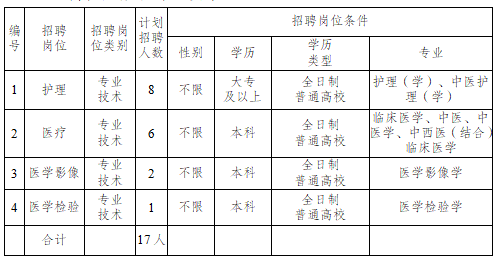 根据医院需要,经请示主管部门同意,拟公开招聘就业见习人员17人。
