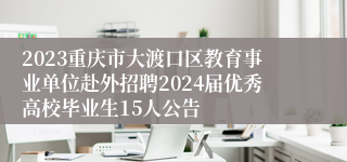 公务员考试网为各位考生带来:2023重庆市大渡口区教育事业单位赴外招聘2024届优秀高校毕业生15人公告。 考生还可以关注本栏目了解更多重庆教师招聘考试精彩内容。