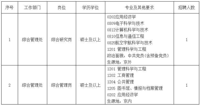 备注:上述专业设置主要依据教育部《授予博士、硕士学位和培养研究生的学科、专业目录》(《普通高等学校本科专业目录》),所学学科专业不在上述参考目录中,但与岗位所要求的学科专业类同的应聘人员,可以主动联系招聘单位确认报名资格。