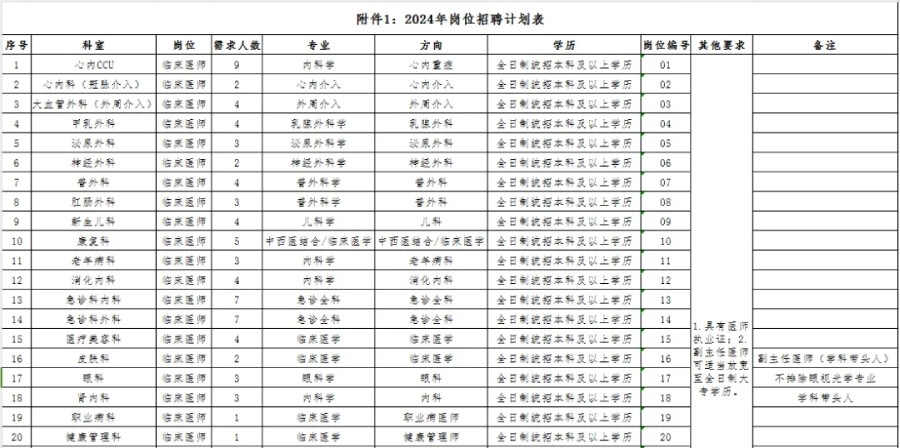 招聘岗位的名额、专业、学历等资格要求详见招聘岗位计划表: