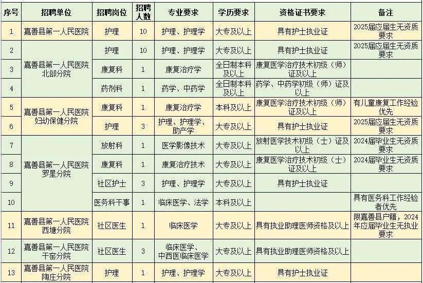 公务员考试网为各位考生带来:2024年浙江医疗卫生招聘公告-嘉兴嘉善县第一人民医院医共体招聘编外合同制工作人员37人。 考生还可以关注本栏目了解更多浙江医院招聘考试精彩内容。