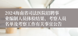 海南省司法医院关于2024年公开招聘事业编制人员体检结果、考察人员名单及考察工作有关事宜的公告