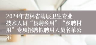 原文标题:关于公示2024年吉林省基层卫生专业技术人员“县聘乡用”“乡聘村用”专项招聘拟聘用人员名单的公告