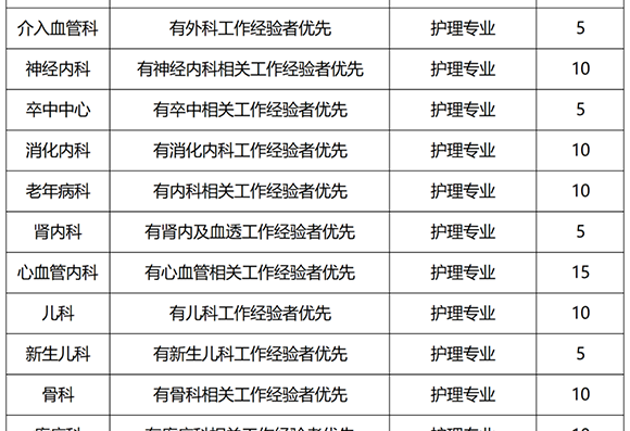4、护理本科及以上学历(工作经验优秀者可放宽学历要求),临床护士必须具有招聘岗位相应的执业资质(执业证、资格证、毕业证)。