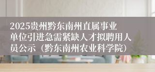黔东南州2025年直属事业单位引进急需紧缺人才拟聘用人员名单(黔东南州农业科学院)