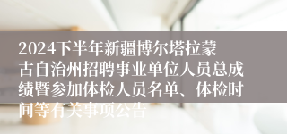 公务员考试网为各位考生带来:2024下半年新疆博尔塔拉蒙古自治州招聘事业单位人员总成绩暨参加体检人员名单、体检时间等有关事项公告。 考生还可以关注本栏目了解更多新疆事业单位考试精彩内容。