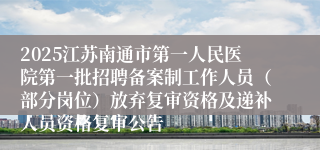 南通市第一人民医院 2025年第一批公开招聘备案制工作人员(部分岗位)放弃复审资格及递补人员资格复审公告