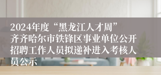 原文标题:2024年度“黑龙江人才周”齐齐哈尔市铁锋区事业单位公开招聘工作人员拟递补进入考核人员公示