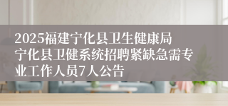根据《三明市事业单位公开招聘工作人员暂行办法》(明人发〔2012〕33号)、《三明市人力资源和社会保障局关于核准三元区等部分县(区)2025年度事业单位公开招聘工作人员计划的通知》(明人社〔2025〕41号)、《中共宁化县委组织部 宁化县人力资源和社会保障局关于印发<宁化县2025年人才需求目录>的通知》(宁人社〔2024〕109号)等文件精神,2025年宁化县卫健系统拟公开招聘紧缺急需专业工作人员7名。现将有关招聘事项通告如下: