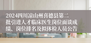 喜德县2024年第二批引进人才临床医生岗位面谈成绩岗位排名及拟体检人员名单
