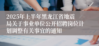 原文标题:黑龙江省地震局关于2025年上半年事业单位 公开招聘岗位计划调整有关事宜的通知