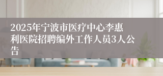 公务员考试网为各位考生带来:2025年宁波市医疗中心李惠利医院招聘编外工作人员3人公告。 考生还可以关注本栏目了解更多全国医院招聘考试精彩内容。