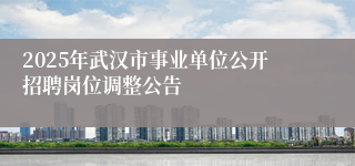 根据《武汉市2025年度事业单位公开招聘公告》相关要求,按照目前各岗位报名的情况,结合招聘单位及其主管部门意见,对报名人数未达到规定的开考比例的岗位进行了调整,现将岗位调整情况予以公告。