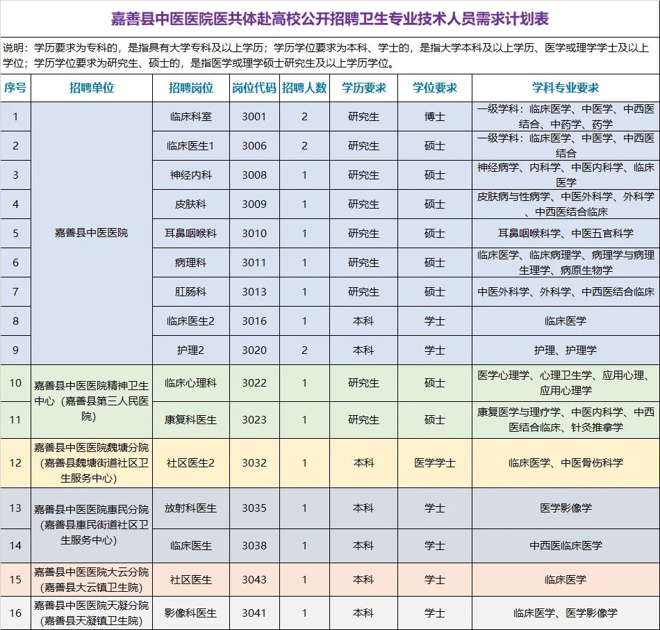 本次共招聘卫生专业技术人员19名,具体需求计划见下表。