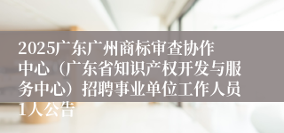 公务员考试网为各位考生带来:2025广东广州商标审查协作中心(广东省知识产权开发与服务中心)招聘事业单位工作人员1人公告。 考生还可以关注本栏目了解更多广东事业单位考试精彩内容。