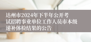 原文标题:达州市2024年下半年公开考试招聘事业单位工作人员市本级递补体检结果的公告