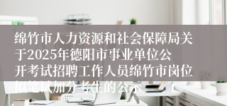 原文标题:绵竹市人力资源和社会保障局关于2025年德阳市事业单位公开考试招聘工作人员绵竹市岗位拟笔试加分考生的公示