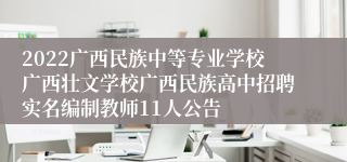 本次公开招聘实名编制教师11名,具体岗位见《广西民族中等专业学校、广西壮文学校、广西民族高中2022年度公开招聘实名编制教师岗位信息表》。