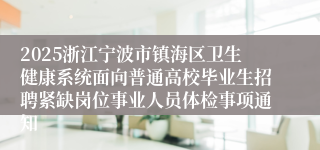 根据《2025年宁波市镇海区卫生健康系统面向普通高校毕业生公开招聘紧缺岗位事业人员公告》规定,现将体检相关事项通知如下: