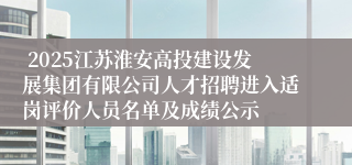 公务员考试网为各位考生带来: 2025江苏淮安高投建设发展集团有限公司人才招聘进入适岗评价人员名单及成绩公示。 考生还可以关注本栏目了解更多江苏国企招聘考试精彩内容。
