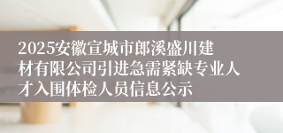2025年郎溪盛川建材有限公司引进急需紧缺专业人才入围体检人员信息表