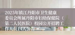 原文标题:丹阳市卫生健康委员会所属丹阳市妇幼保健院(第二人民医院)2025年校园公开招聘工作人员公告