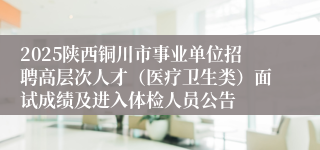 原文标题:2025年铜川市事业单位公开招聘高层次人才(医疗卫生类)面试成绩及进入体检人员公告