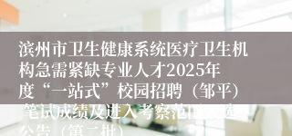 根据《滨州市卫生健康系统医疗卫生机构急需紧缺专业人才2025年度“一站式”校园招聘工作方案》要求,确定邹平市医疗卫生机构校招笔试合格分数线为60分。现将滨州市卫生健康系统医疗卫生机构急需紧缺专业人才2025年度“一站式”校园招聘(邹平)笔试成绩及进入考察范围人选名单(第二批)予以公布。