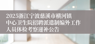 下载附件》》2025浙江宁波慈溪市横河镇中心卫生院招聘派遣制编外工作人员体检考察递补公告