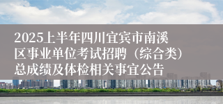 原文标题:宜宾市南溪区事业单位2025年上半年公开考试招聘工作人员(综合类)总成绩及体检相关事宜公告