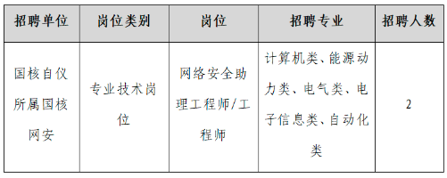 根据国核自仪所属国核网安公司业务发展需要,现面向国家电投集团系统外公开招聘2人。