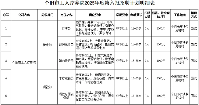 六、本招聘简章由个旧市工人疗养院负责解释。