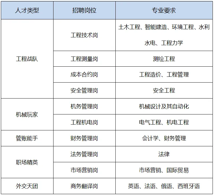 3. 职业素养:身体健康,能适应施工企业流动性工作特点,具备吃苦耐劳精神与开朗性格。