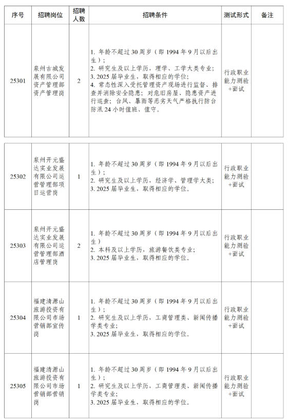公务员考试网为各位考生带来:2025福建泉州文旅集团第二批招聘17人公告。 考生还可以关注本栏目了解更多福建国企招聘考试精彩内容。