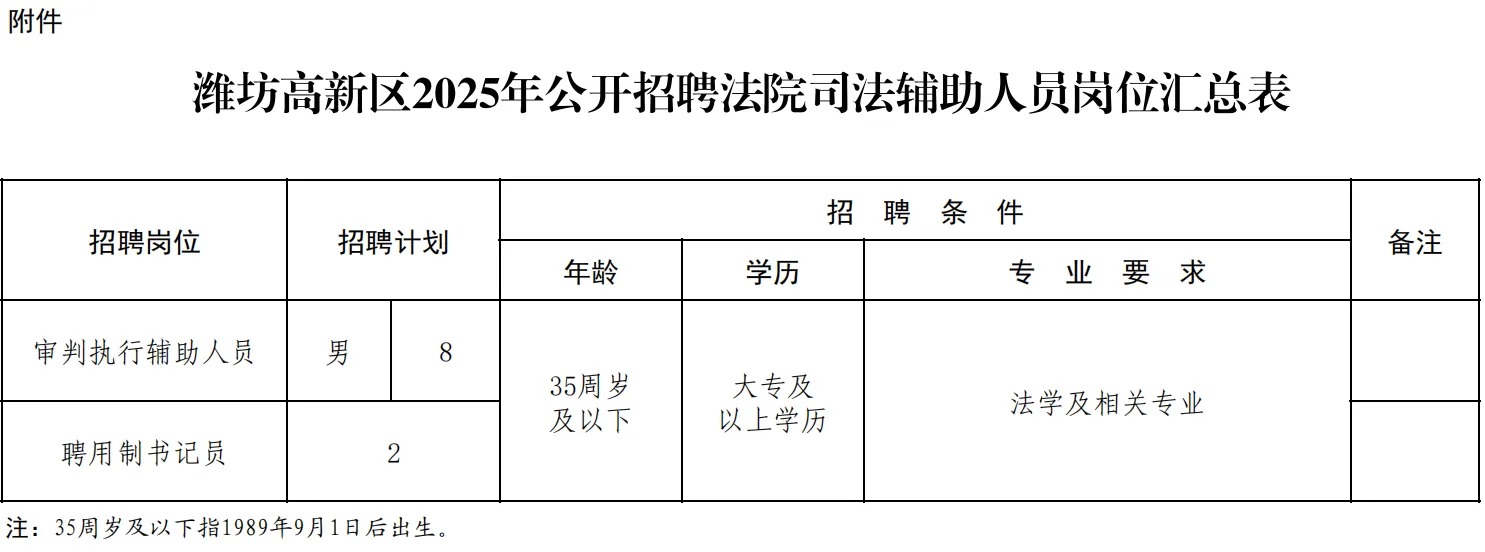 原文标题:潍坊高新区2025年公开招聘法院司法辅助人员10名