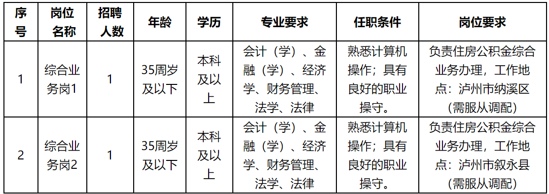 原文标题:泸州市财政局关于泸州市住房公积金管理中心招聘编外人员的公告