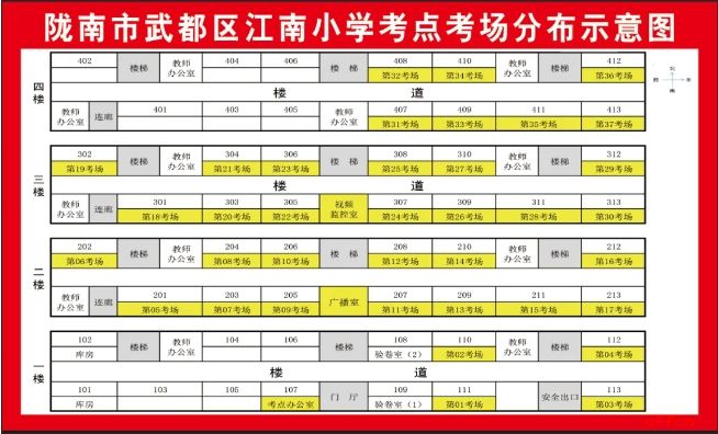 此次笔试,陇南考区设武都区江南小学和武都区东江中心小学2个考点。请考生认真查阅本人准考证,不要走错考场(教室)或坐错座位。建议考生提前一天熟悉考点位置和交通路线,考试当天提前到达考点,避免由于交通堵塞或找不到停车场地等原因耽误考试。