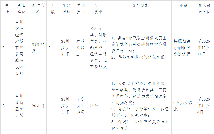 受台州湾新区管委会、台州循环经济发展有限公司及其下属单位的委托,拟向社会公开招聘编制外工作人员,实行合同聘用制,与台州新名匠人力资源服务有限公司签订合同,现将相关事项公告如下: