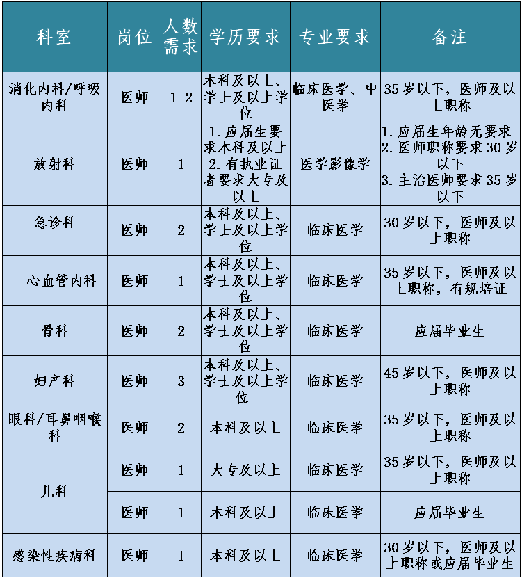3.简历要求:应届生简历包括学生成绩单、推荐表、各种获奖证书及身份证复印件。有工作经验者简历包括学历、职称及执业证书、身份证等复印件(报名时请携带原件审核)。