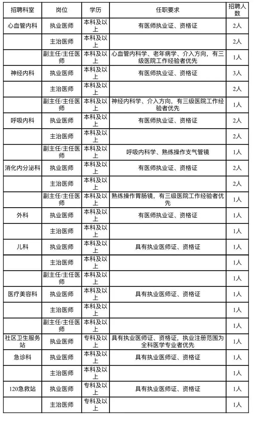 根据医院发展需要,现面向社会公开招聘以下岗位人员,有关事项公告如下: