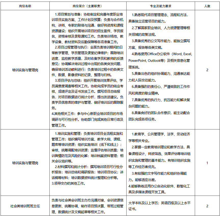 (六)具有2年以上培训项目实施、管理或相关教育工作经验者优先,有政府、事业单位或大型培训机构工作经验者优先;
