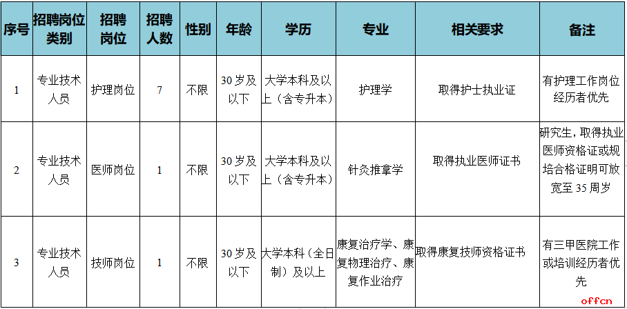 1.护理岗位、医师岗位、技师岗位