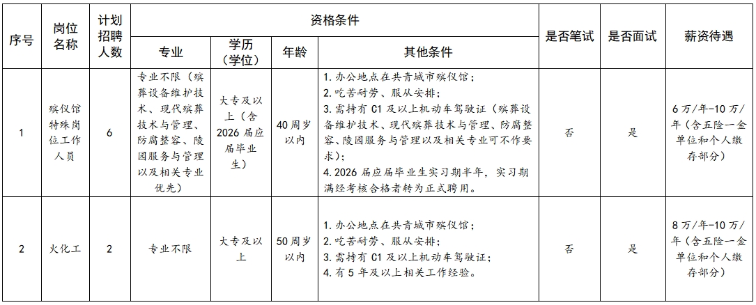 原文标题:2025年共青城市民政局公开招聘殡葬服务政府购岗人员公告